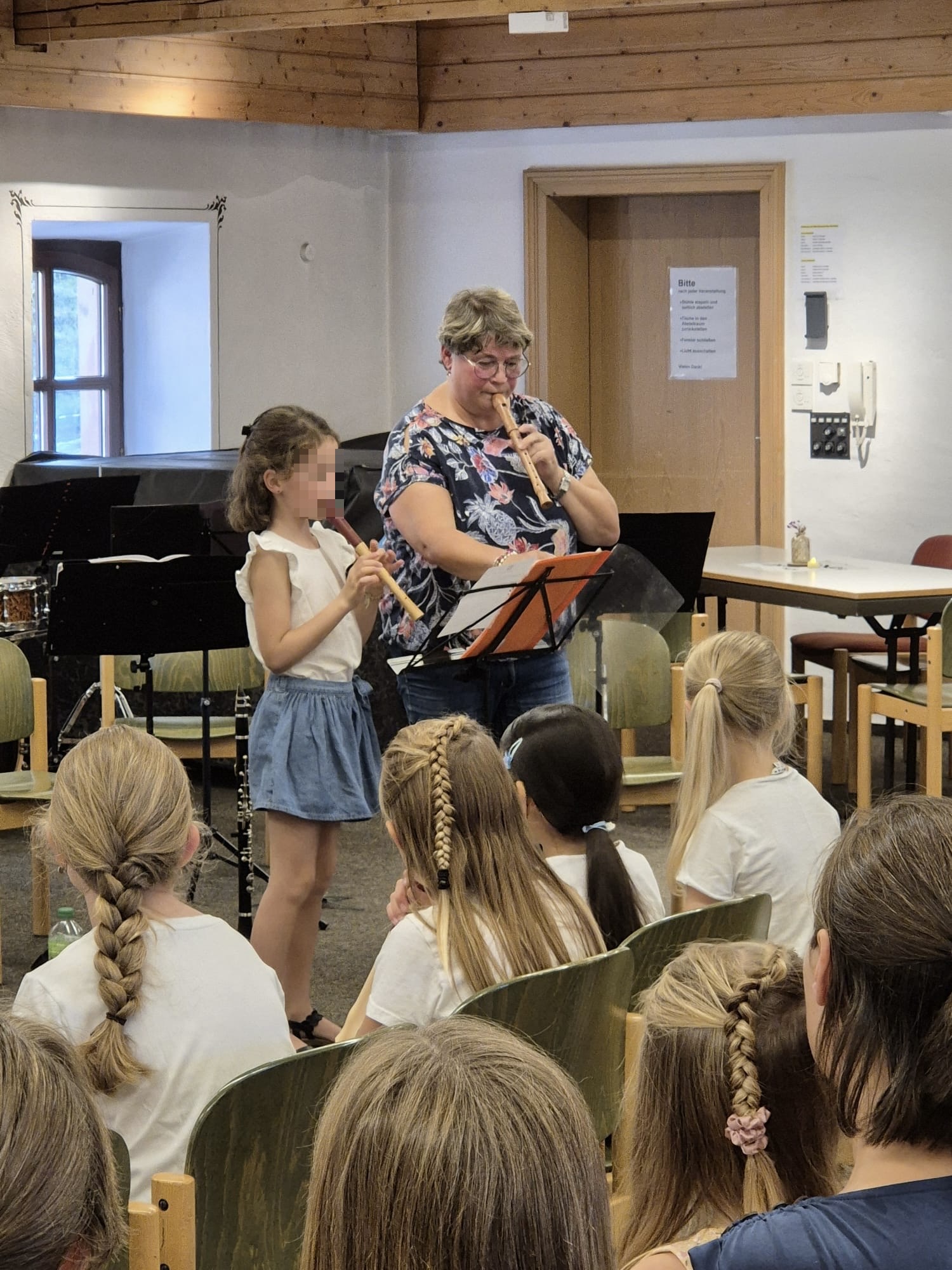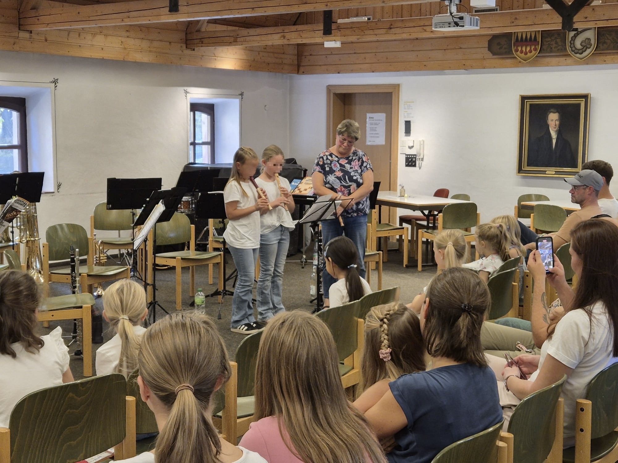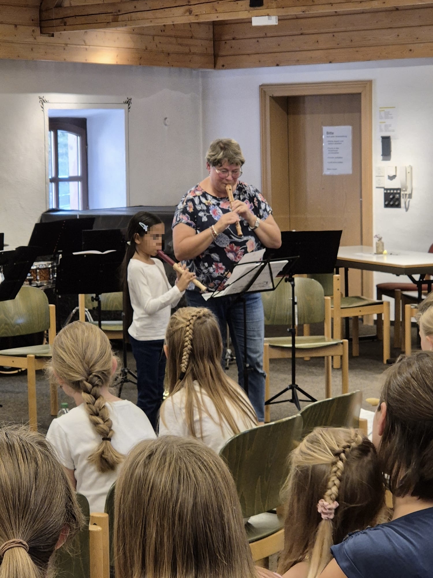 Den Auftakt gestalteten die jüngsten Musikschülerinnen und -schüler an der Blockflöte. Mit sichtbarer Begeisterung und viel musikalischem Können präsentierten sie ihre einstudierten Stücke und ernteten bereits nach den ersten Tönen großen Beifall.