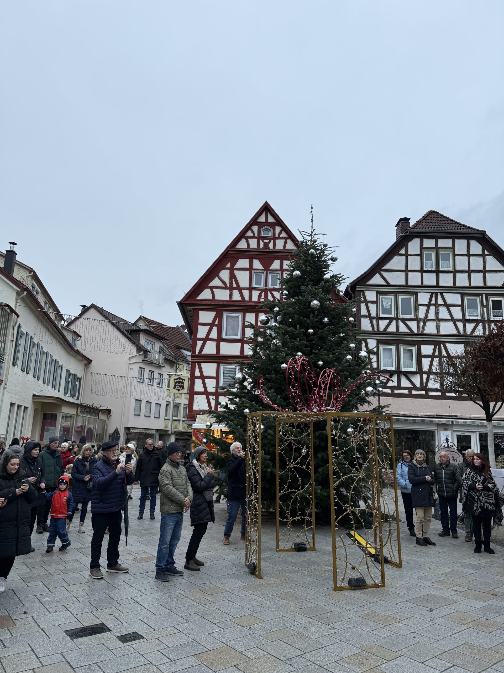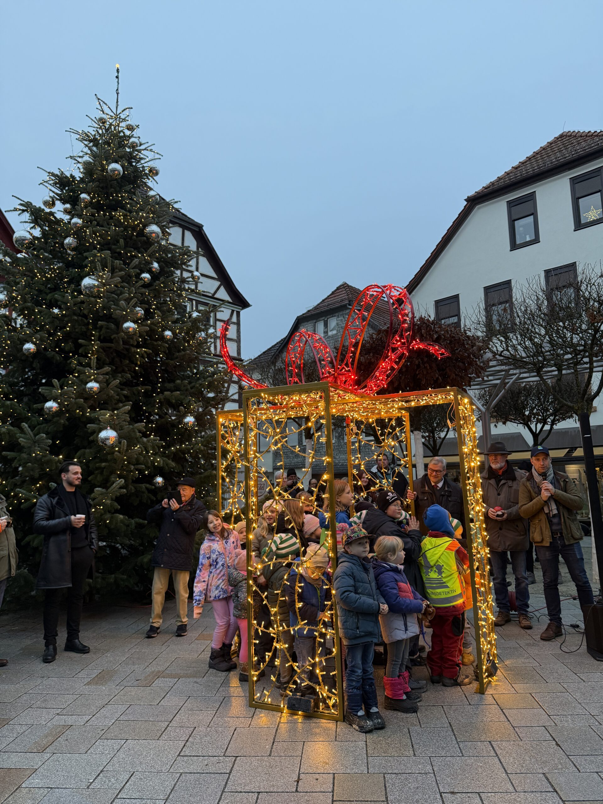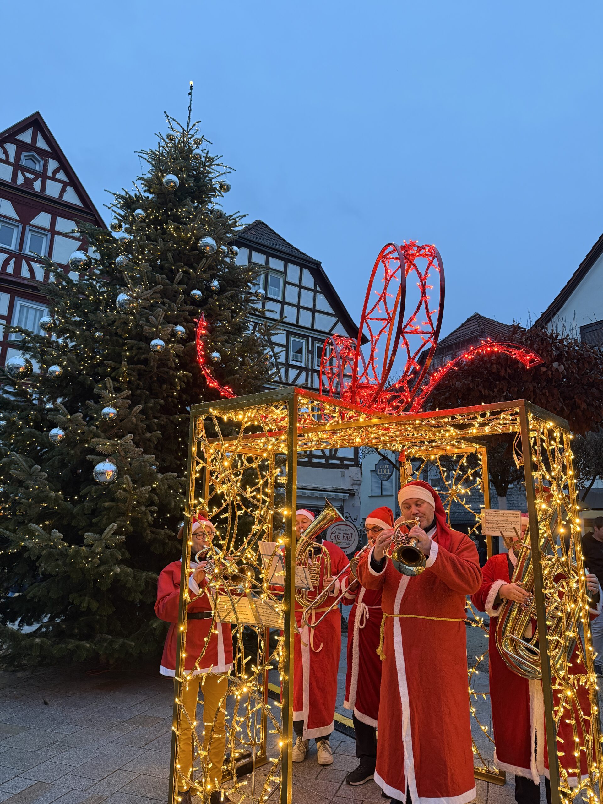 Am Sonntag, dem ersten Advent, gaben die Musikerinnen und Musiker von Kärrners Buam & Madeln den musikalischen Startschuss in die Vorweihnachtszeit. Zur feierlichen Einschaltung der symbolischen Weihnachtsbeleuchtung erfüllten weihnachtliche Melodien den Marktplatz.